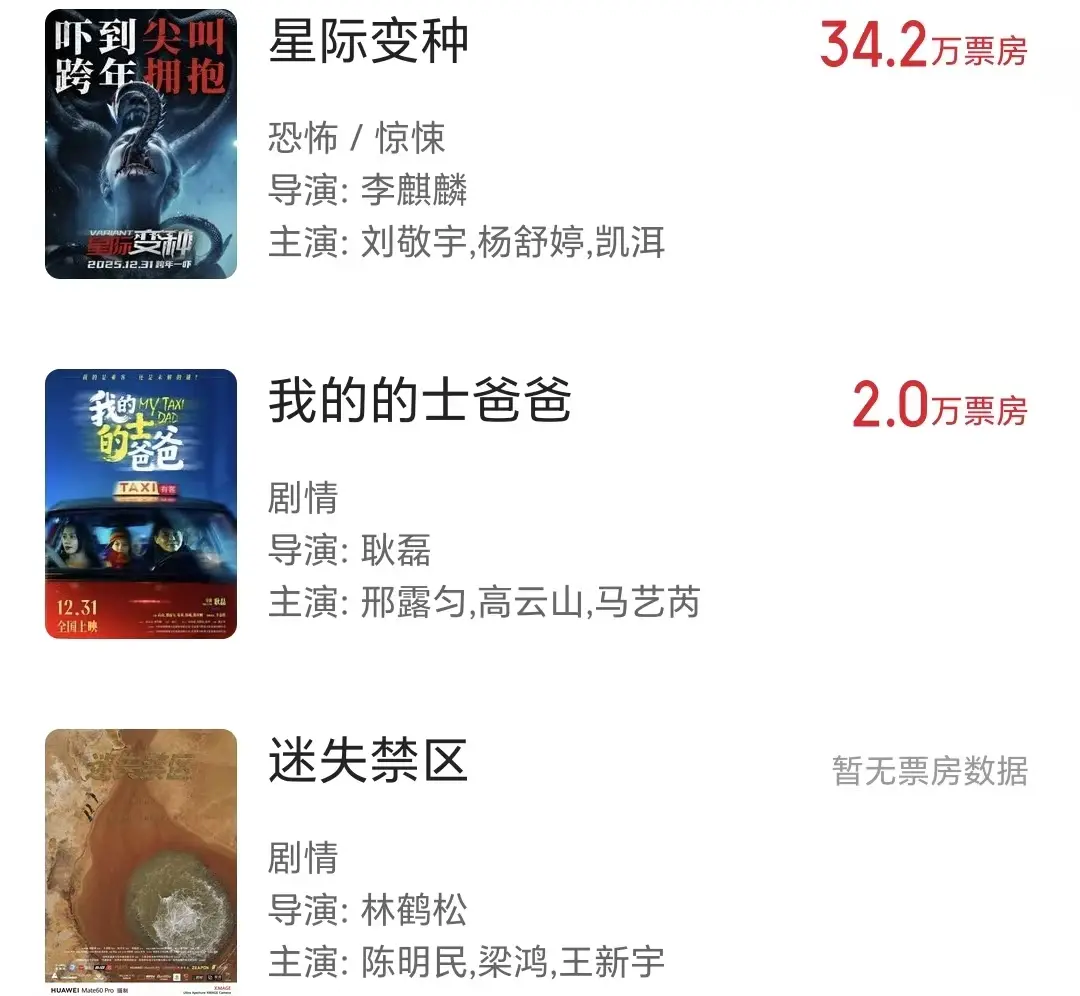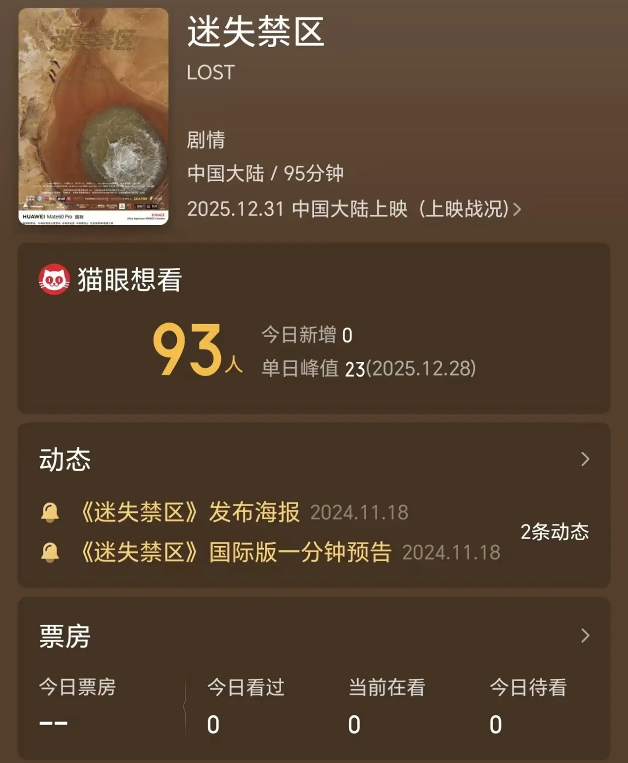 《迷失禁区》近两天票房只有零元,跨年档最惨电影诞生了。
