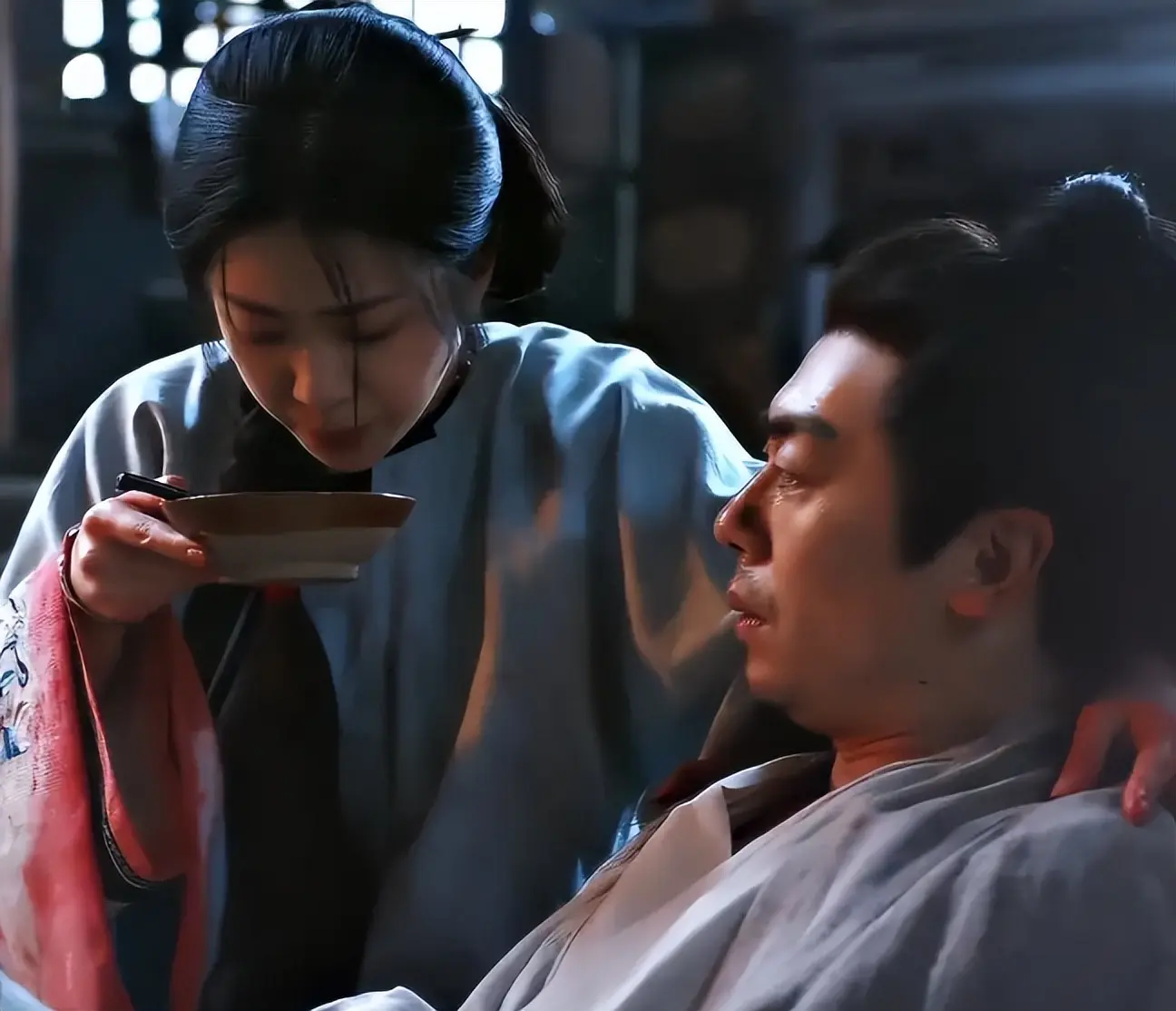 眼眶通红,眼泪大颗大颗滴落,低头转目都是柔情。